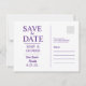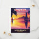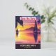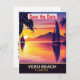 Convite de casamento save the date Vero Beach, cartão postal de viagem. Barcos à vela na água, montanha atrás e pôr do sol lindo em cores vibrantes.