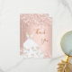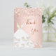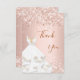 Um fundo gradiente rosa dourado e rosa-bege. Com brilho falso, faíscas e um vestido. Na frente, uma grande letra manuscrita e o texto: Obrigado.