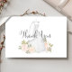Expresse gratidão com estilo com este cartão de agradecimento de chá de panela de noiva com um delicado vestido de noiva em aquarela acentuado por detalhes florais em rosa bege. Projetado com flores de rosa elegantes, escrita em caligrafia e tipografia clássica, oferece uma maneira simples, porém sofisticada de compartilhar uma mensagem personalizada com os entes queridos. Perfeito para noivas, este cartão encantador captura o romance da ocasião, mantendo seus bilhetes de agradecimento atemporais e elegantes.