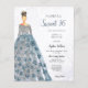 Orçamento Silver Dusty Blue Sparkle Vestido Doce Doce 16 Aniversário Convite