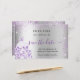 Uma moça e moda Guarde o cartão para um casamento. Um fundo metálico moderno, falso e prateado, decorado com poeira brilhante púrpura e um vestido. Personalize e adicione uma data e nomes. Letras pretas e roxas coloridas. O texto: Salvar a Data é gravado com um script de estilo com letra de tendência grande.