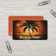 Palmeiras silhuetas com um belo pôr do sol atrás. Este é um cartão de visita que pode ser usado por profissionais de viagem. Pode também ser utilizado para a indústria de surf. O cartão pode ser facilmente modificado (para inserir o nome da sua empresa, nome, título, endereço, número de telefone e endereço de e-mail). Você também pode adicionar ou remover preferencialmentes de texto facilmente. Por exemplo, você poderia adicionar um URL de site. Personalize isso para torná-lo seu próprio. palmeiras árvores pôr do sol paraíso sol ilha férias agência viagem agência de surfs surfar