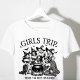Camiseta Tri-Blend Viagem engraçada das garotas bruxas do Halloween apresenta o texto "Hora da viagem das garotas, vamos ficar perversas" em tipografia de roteiro moderno com bruxas reunidas em torno de um caldeirão. Perfeito para festas de Halloween, viagem das garotas e celebrações. Criado por Evco Studio www.zazzle.com/store/evcostudio