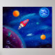 Esta impressão de qualidade da minha pintura original em acrílico, "Viagem Espacial", apresenta um menino e seu gato em sua incrível viagem espacial em um foguete vermelho… Uma decoração perfeita para qualquer quarto de crianças. | ©2014 Amazing Journey Art, www.amazingjourneyart.com
