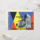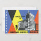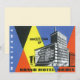 Ilustração clássica de pôster de viagem europeu ou etiqueta de bagagem do Grand Hotel Orbis, Varsóvia. Polônia. Uma série de triângulos e diamantes em um padrão com uma imagem arquitetônica de um edifício.