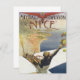 Poster de viagens de ilustração Vintage, da cidade de Nice, França, com uma visão aérea do mapa, com um piloto que voa num pequeno avião e lança buquês de rosa flores para fora do avião. Ela está sobrevoando a costa sul da Riviera francesa. Você pode ver a costa com praias arenosas e a cidade de Nice. Reunião da D'Aviation, abril de 1910.