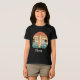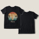 Esta camiseta personalizada e neutra em termos de gênero apresenta uma prancha de surf legal, ondas rolantes em estilo retrô e silhuetas minimalistas de palmeiras. Este design combina tons vintage ousados para uma estética de surf nostálgica.