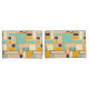 A vibrant abstract pattern with rectangles of varying sizes in teal, orange, peach, and cream tones, outlined in dark brown. Geometric and retro feel.