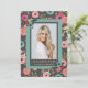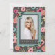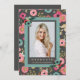 Este convite festa de formatura moderno e ousado apresenta uma cinza de carvão de fundo colorido com flores coloridas e a fotografia pessoal do formando. Arte floral via www.createthecut.com.