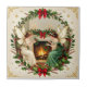 Fairies busy with Christmas decoration around a fireplace fire with decorative Xmas wreath circle design.