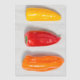 Pimentos de cor diferente colocados num conselho de corte Imagem © Angelika Stern