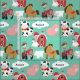 Os miúdos do tecido amarão, caracterizam um fundo do aqua com os vários animais de fazenda assim como o fazendeiro que conduz um trator vermelho, uma nuvem que você pode personalizar com nome da sua criança, e um celeiro e um silo vermelhos do feno. Igualmente caracteriza um cavalo marrom, uma vaca manchada preto e branco, um porco cor-de-rosa, um cordeiro branco, e uma galinha!
