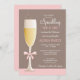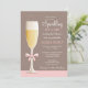 Convide sua família e amigos para conhecerem sua doce menina em uma casa aberta "Sip and See" com este convite divertido com uma flauta de champanhe "cintilante", amarrada de forma bonita com um arco rosa.  Um excelente de ter um horário e data para apresentar o bebê a todos ao mesmo tempo.  Perfeito para um segundo filho ou em vez de um chá de fraldas tradicional. Excelente para avós também!