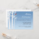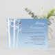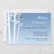 Um convite bonito para alguma evento ou festa natalícia do inverno. Árvores de vidoeiro do branco das características de design com o cardeal vermelho no fundo azul com flocos de neve de queda.