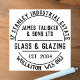 Vidro-fabricantes. Carimbo De Borracha De Vidro E Vidro. Nome da Empresa, Tipo de Negócios, mais Duas Linhas de Endereço em um efeito circular. Um carimbo de empresa para todos os tipos de artigos de papelaria, envelopes, embalagens, etc. Coloque seu endereço de retorno de forma fácil e elegante.