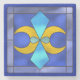 Uma simples, mas bela porta copos de pedra azul com um design de lua geométrica de vidro manchado.