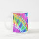 Uma caneca de café de gravata colorida brilhante, arco-íris.