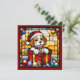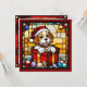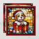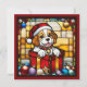 Placa de Natal Personalizável Enroscada Vidro Puppy Faux Vidro Manchado Enviar cartões de natal adoráveis com este cartão de Natal personalizável, de cor azul-pãozinho. Este design IA digitalmente editado apresenta um filhote bonito envolto em fitas festivas, cercado por tons de joias ricas que criam o aspecto clássico da arte de vidro manchado. Personalize seu cartão com nomes, datas ou uma mensagem sincera para tornar suas saudações realmente especiais. Perfeito para compartilhar alegria de Natal divertida com amigos, familiares ou clientes nesta temporada.