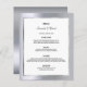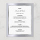 Um casamento elegante e glamouroso ou um cartão de aniversário de casamento de 25. Modelos para seus nomes, data e menu de casamento. Um falso quadro prateado e branco e uma cor de fundo mágica, falso glamourosa, metálica prateada. Letras pretas coloridas. Fundo: fundo metálico prateado falsa.