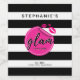Adicione um toque de chic a qualquer celebração com nosso Glam em uma etiqueta de vinho personalizada do Glass. Apresentando riscas brancas e pretas em negrito com sotaques rosa elegantes, este design é personalizado com seu nome para uma peça de declaração verdadeiramente exclusiva. Perfeito para aniversários, noites de meninas, solteironas, ou qualquer ocasião de vidro, esses rótulos transformam garrafas comuns em pedaços de na moda. Fácil de aplicar e projetado para impressionar, eles são a mistura perfeita de moda e diversão.