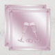 Este convite civil impressionante do casamento para casais alegres ou lésbicas tem um fundo cor-de-rosa, metálico protegido do efeito com os dois vidros rosas pálido do champanhe enchidos com o vinho sparkling, borbulhante e as duas alianças de casamento cor-de-rosa. As linhas dobro sobrepor para formar uma beira ao convite e estes "são fixados" nos cantos por diamantes cor-de-rosa falsificados.