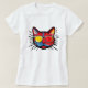 "Essa camiseta apresenta um design bonitinho com um gato estilizado que captura perfeitamente a essência lúdica e encantadora de nossos amigos felinos. O gato, com olhos curiosos e um olhar sorrateiro, está posicionado no centro da camisa, criando um vivo e atraente contraste. Feita de algodão mole, esta camiseta é perfeita para amantes de gatos e para aqueles que querem adicionar um toque de ternura e ironia ao seu guarda-roupa. Disponível em cores diferentes, para melhor expressar seu estilo felino!"