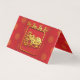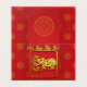 Papel asiático ouro cortado de um Ox em um quadrado com o mesmo design em preto para criar sombra de queda. Design na placa de saudação vertical com desejos de ouro em vietnamita + padrão tradicional em vermelho como fundo (frente e dentro na placa). Cartão de saudação, Cartão postal Feriados, convite, suprimentos de artesanato, suprimentos de festa e muito mais... Perfeito para o Ano Novo Chinês ou Vietnamita do Ox 2021.