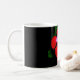 Fotografia de vincas vermelhos em uma caneca de café com fundo preto. Um presente perfeito para a mamã, filha, avó, esposa, jardineiro, e apenas sobre qualquer um mais (incluindo o).