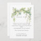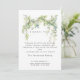 Cartão de agradecimento de funeral, luto. Nome da família e agradecimentos no verso. Tipografia. Verdura, folhagem botânica. Mensagem.