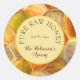 Um rótulo para mel que utiliza a abstrato marrom ouro como fundo.