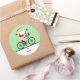 Etiquetas de presentes de Natal cicláveis, etiquetas de favoritos para festas ou selos de envelope de cartões de Natal com Papais noeis de bicicleta.
