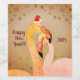 Um belo rótulo de vinho com pássaros flamingos, chapéu de Papai Noel e flocos de neve. Fácil de adicionar texto personalizado e ano. É um belo complemento para a sua celebração.