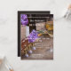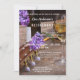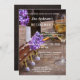 Convite de festas de aposentadoria elegante com uma cena maravilhosa com guitarra, vinho branco e tinto e flores lilás. Bonita festa de aposentadoria organizada por um empregador, assim como uma celebração de aposentadoria organizada de forma privada.
