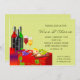 Vinho elegante e convite de festas de queijo. Ilustração de arte digital do Photoshop de dois copos de vinho, três garrafas de vinho, bandeja de queijo sentada em uma mesa com um pano de mesa vermelho. Texto de exemplo fornecido para começar a personalizar este convite para a festa do vinho.
