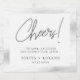 Folha de prata elegante moderna "Cheers!", a ser escrita com uma estrutura de brilho prateado, etiqueta de garrafa personalizada. Personalizar texto, personalizar estilo de fonte, cor e tamanho.