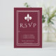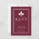Cartão de Resposta ao Casamento Elegante e simples, com uma flur de lis contra um fundo de vinho. Esta design de tendências é uma escolha única para um casamento moderno. Fácil de personalizar com seus detalhes de casamento. Clique em "Personalizar" para encontrar mais opções de personalização.