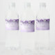 Rótulo de Garrafa de Água com Lindas Flores Roxas e Pérolas Penduradas