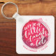 O Round chaveiro apresenta texto divertido "Wine a Little Laugh A Lot" em uma mancha de vinho tinto - personalizado com qualquer informação. Chaveiros fazem presentes memoráveis para familiares e amigos ou criam por si mesmos.