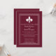 Encantem seus convidados com este Convite de Casamento de Fleur de Lis Vermelho de Vinho, projetado para papelaria de casamento de inspiração francesa. Este belo convite mostra uma refinada flur de lis motif enquadrada por um sofisticado quadro de linha dupla, combinando a estética francesa com a elegante escrita e a tipografia moderna. Perfeito para a noiva e noiva, seu layout elegante e design moderno destacam seus detalhes de casamento com charme de eterno. Este convite totalmente personalizável é ideal para casais que buscam uma celebração romântica, inspirada na França. Perfeito para casais tendo um casamento temático de inspiração francesa.