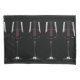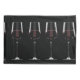Silhuettes de seis copos de vinho com vinho tinto em fundo preto...