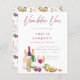Elegante "Vino antes dos Voos" chás de panela de convites. Este design apresenta uma cena aquosa de vinho tinto, champanhe francês e rosa com paus italianos, uvas, e um quadro de queijo. Perfeito para provandos de vinho e chás de panela de vinificação. Cartões se revertem a um padrão elegante de conselhos de charcutaria, garrafas de vinho e flautas espumantes. Ideal para comemorações de primavera e verão com um tema italiano. Como parte da seleção do orçamento do Zazzle, esta folha não vem em tamanhos padrão de cartão. Para colocar este design em uma placa padrão, você pode encontrá-lo na coleção ou usar o Zazzle Make Machine para transferi-lo para o seu produto preferido. Visualize a coleção vinculada nesta página para itens correspondentes ou visite nossa loja para mais convites de chá de panela!