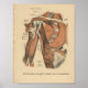 impressão de anatomia em alemão em 1888. Ilustração anatômica humana vinda do Atlas de Mão da Anatomia por Henke. Músculos profundos do peito, ombro e braço. Achsel von vorn geoffnet pectoralis minor und coracobrachialis