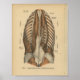 impressão de anatomia em alemão em 1888. Ilustração anatômica humana vinda do Atlas de Mão da Anatomia por Henke. Músculos profundos do tórax e dorso com as costelas. Lange ruckenmuskeln, oberflachliche schicht