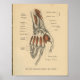 impressão de anatomia em alemão em 1888. Ilustração anatômica humana vinda do Atlas de Mão da Anatomia por Henke. Músculos e ossos do pulso e da mão. Handrucken, gelenke, Mn. interoffei