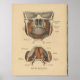 impressão de anatomia em alemão em 1888. Ilustração anatômica humana vinda do Atlas de Mão da Anatomia por Henke. Vista interna dos músculos da mandíbula. Mylohoideus