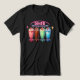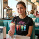 Sip straight into 1950s nostalgia with this super-fun retro diner t-shirt. Four classic milkshakes in juicy strawberry pink, rich chocolate brown, cool mint green, and dreamy blue sit proudly under a glowing pink neon “DINER” sign with sparkling stars. Each shake is piled high with whipped cream, bright cherries, and striped straws – pure soda-fountain magic!