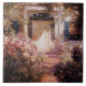 Vintage Abbott Fuller Grave Doorway and Garden Cerâmica Azulejo - Um belo azulejo cerâmico inspirado em 'Porta e Jardim', uma pintura criada pelo pintor americano Abbott Fuller Graves (1859-1936). Nascer em Weymouth, Massachusetts, Abbott Fuller Graves foi pintor e ilustrador especializado em pinturas decorativas de jardins abertos e com vida estática floral. Em 1884, Graves foi à Europa aperfeiçoar suas habilidades como pintor de flores, treinando em França e em Itália. Seu uso de pinceladas grossas, cores brilhantes e luz natural revela a influência do impressionismo europeu.