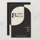 Estes convites de casamento planos de 5" x 7" da arte safena apresentam letras em preto e branco com design geométrico em branco de osso e preto com espaços reservados para os nomes dos primeiros casais de casamento, data do casamento, local de casamento e informações de recepção.