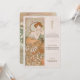 Este belo cartão de cardápio de casamento é uma celebração da arte nouveau elegance, apresentando um design com uma graciosa deusa floral enfeitada em trajes fluentes e inspirados na safra. Com detalhamento intrincado e tons suaves e pastéis de pêssego, verde-sábio, rosa poeirento e marfim, o trabalho de arte capta uma estética eterno que lembra a era Belle Époque. O fundo apresenta flores delicadamente florescentes e padrões ornamentais elegantes, evocando uma sensação de sofisticação romântica. A parte de trás do cartão continua o tema, exibindo um padrão floral impressionante e intrincado em cores coordenadas, perfeito para casamentos de vintage ou nouveau inspirados na arte. Ideal para casais que procuram um menu de casamento elegante e artístico que duplica como um belo guardião.