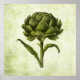Desenho de uma alcachofra em tons de verde. Fundo verde desapontado. Bonito presente para quem ama comida mediterrânica, alcachofras ou cozinhar.